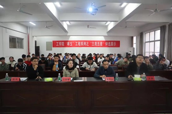 在推进全员育人的过程中,学院注重标杆典型的示范引领作用,在学院官网增设“师德师风”专栏,选树优秀教师展开典型宣传,用身边的榜样传递师德力量,积极营造优良的师德师风建设氛围;通过邀请优秀校友、优秀学生代表分享自己的成长经历,举办考研、就业等各类经验分享交流会,在交流分享中促进学生成长成才;每年度开展本科生“三亮五星”评选展示活动,分别评出“学习星”“实践星”“文明星”“服务星”“文体星”,积极培育选树和宣传学生中的先进典型,形成示范引领效应。同时,学院依托11个创新实践工作室、6个重点科研团队,推出双创工作坊,打造“一专业一竞赛”,成功举办学院大学生数字化作品创新设计大赛、结构设计竞赛、CAD手工制图等专业竞赛9次,2021年教师指导学生参与科研及专业竞赛活动覆盖面达到75%,积极营造创新实践氛围,形成创新实践育人工作特色。2021年,为提升工科学生人文素养,学院推出“精工讲堂”,为在校生开展面试礼仪、媒体宣传、传统文化等系列讲座,不断增强学生综合素质。