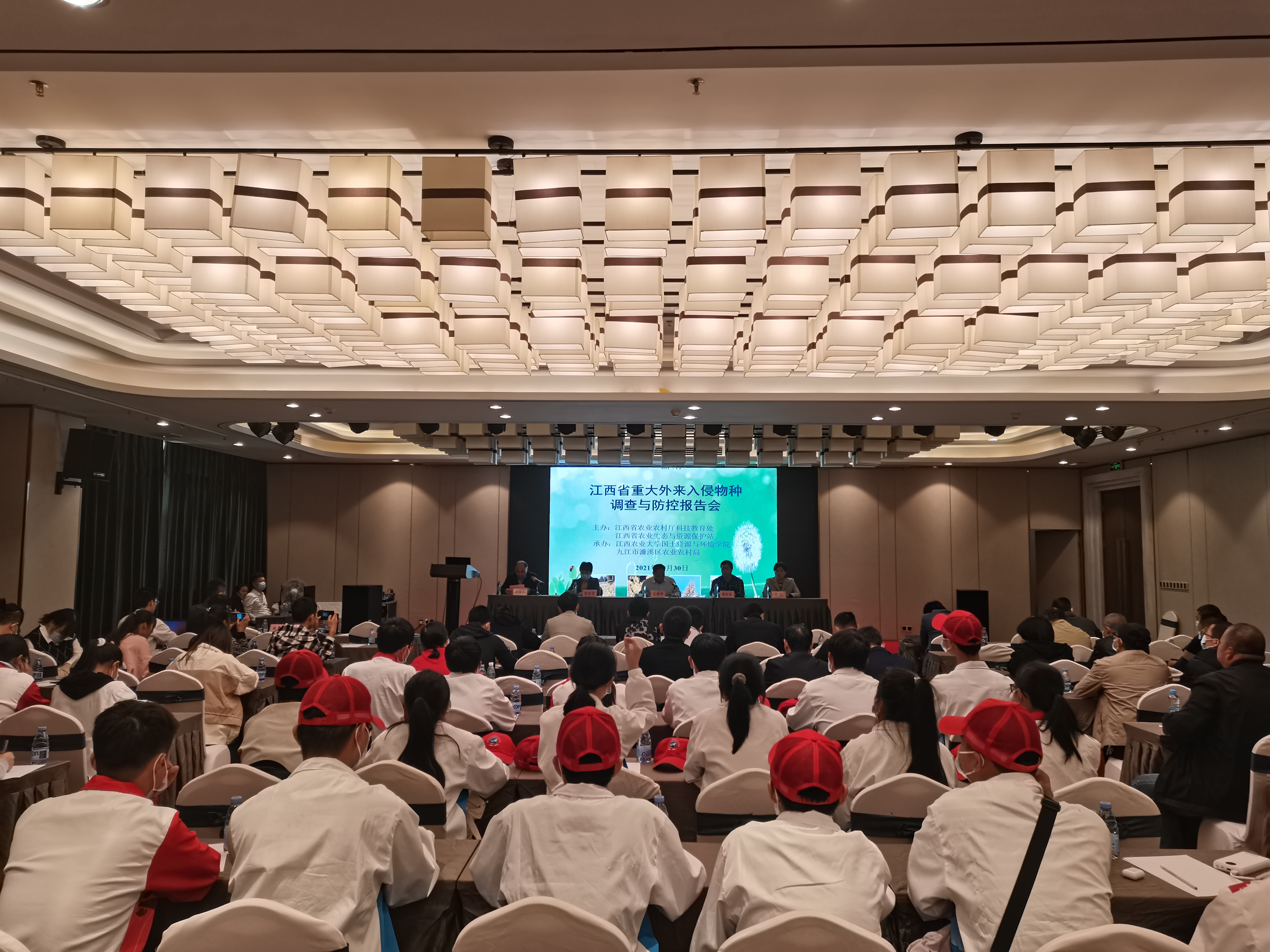 下午,召开江西省重大外来入侵物种调查与防控报告会,示范项目首席专家周春火教授主持。赵尊康博士针对在南昌进贤和九江濂溪两地同时开展的示范试验作总结报告;农业农村部农业生态与资源保护专家黄宏坤研究员作了题为《外来入侵物种防控》的线上专题报告,介绍了当今我国外来物种入侵的严峻形势以及面临的主要问题和困难,并提出下一步工作思路和重点任务;江西省农业科学院黄水金研究员作了《福寿螺的调查与防控技术》专题讲座。江西省农业生态与资源保护站副站长王惠明就明年我省即将开展的全省外来入侵物种普查工作作了部署。