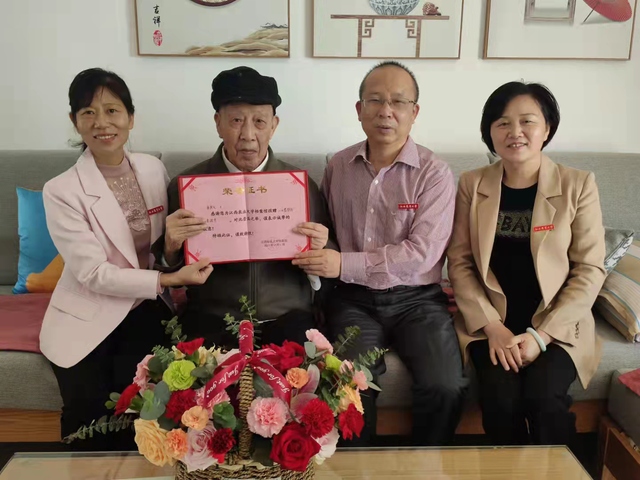 为表达对捐赠史料的感谢,10月12日上午,副校长曾志将在档案馆、校友办负责人的陪同下,到唐广文家中看望了93岁高龄的老教师。曾志将代表学校对唐广文老师的捐赠行为表示感谢,感谢他为学校所做的贡献和捐赠的珍贵档案史料,向他送上了捐赠证书。唐广文老师捐赠的江西农学院毕业证书弥足珍贵,丰富了学校的档案馆藏,为进一步开展校史研究提供了宝贵的第一手资料。