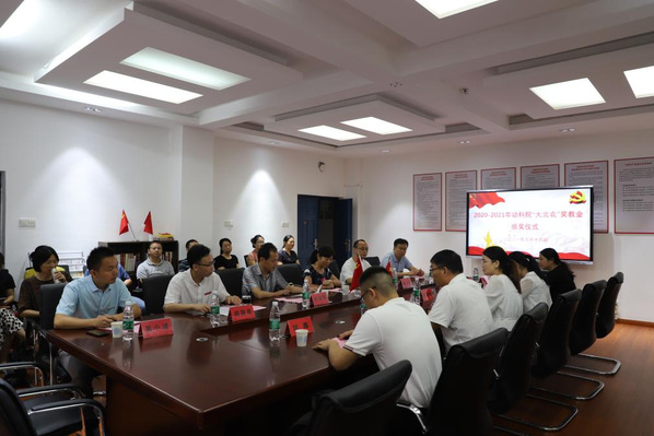 9月16日,大北农—大佑吉集团中南平台绿色巨农江西区育肥总经理王凯元等一行4人专程来访动科院,参加2020-2021学年大北农奖教金颁奖仪式。副校长许斌华、校友基金会主任朱小玉及动科院领导班子出席颁奖仪式。动科院工会主席李琳主持仪式。