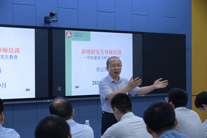 为了让新增导师尽快胜任研究生指导工作,9月24日,ac米兰2021年度新增研究生导师培训会在致达楼智慧教室举办,副校长曾志将作主题报告,研究生院院长陈美球主持会议。近80名新增博士生导师、硕士生导师参加了培训会。