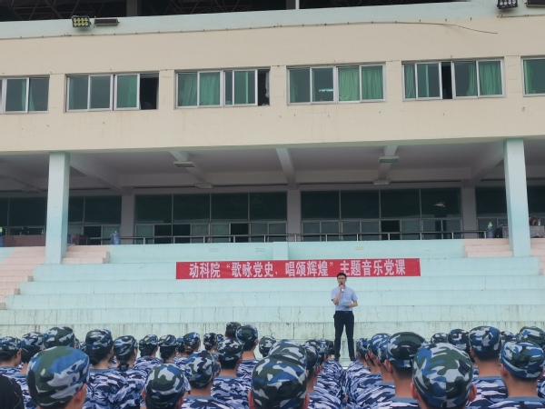 动科院统筹做好2021年新生军训安排,将正在开展的党史学习教育、庆祝党的百年华诞与军训结合起来,精心策划一系列活动,将党史学习教育融入军事技能训练、国防教育等环节,通过音乐党课、聆听七一专题党课、观看庆祝中国共产党成立100周年大会等形式,为党史学习教育增添鲜活内容,帮助学生深刻认识和了解中国共产党百年奋斗的光辉历程,激发学生爱党爱国的深厚情怀。