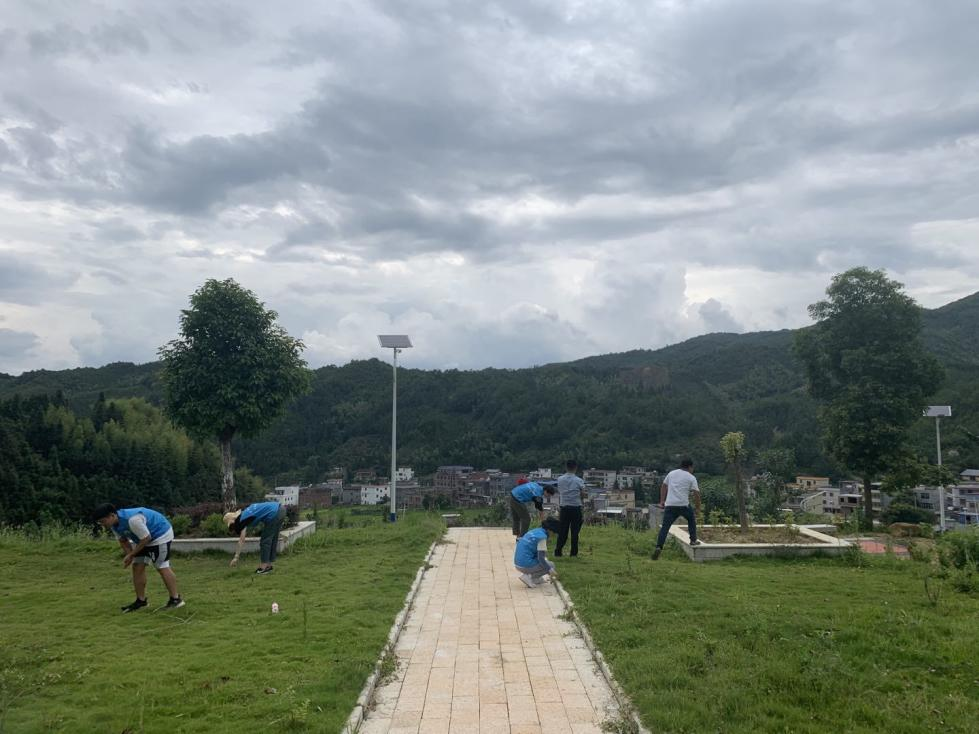 7月6日上午9时,“红色青年在定南”团队来到定南县五烈士陵园,全体人员在“五烈士纪念碑”前列队肃立,奏唱国歌,并向烈士献花篮,行鞠躬礼。大家重温入党誓词,倾听讲解员回顾胡传周一家五口赴汤蹈火舍身取义的英雄事迹,并瞻仰烈士碑,向烈士献花以深切缅怀为革命事业抛头颅、洒热血丰功伟绩。下午,营队在鹅公镇留輋村支部书记的带领下,走进富村山公园进行除草活动。师生们了解到,公园的建设全部由村政府出资,在村内招收贫困户进行公园的建设、维修,是村内一项以业助贫的重要工作。成员们在这清扫活动中不仅更深刻体会做实事的重要性,也了解到村政府为防止村民反贫而推出的各项政策。
