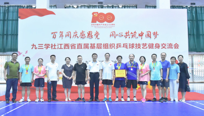 6月27日,九三学社“百年同庆感恩党、同心共筑中国梦” 江西省直属基层组织乒乓球技艺健身交流会在ac米兰体育馆举行。校长赵小敏,九三学社江西省委员会专职副主委肖礼庆,九三学社江西省委员会副主委、新余学院院长张玉清,校党委统战部部长黎瑛等到会颁奖。