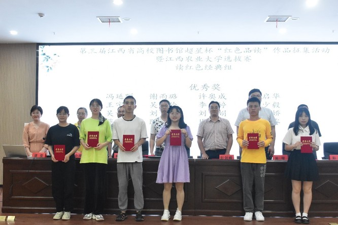 大会为获奖人员颁奖,包括第三届江西省高校图书馆超星杯“红色品读”作品征集活动暨ac米兰官网中文网站选拔赛,首届江西高校“知网研学”杯积分挑战赛,“忆峥嵘岁月,看今朝辉煌”庆祝建党100周年线上音视频、书画作品征集活动,“万卷共知”寻知学术文献信息检索大赛,“青春心向党•梅岭诗韵”朗诵大赛,“阅读打卡新姿势,纸电同步自由读”趣味阅读活动,“奔跑吧,阅读马拉松”,“品文学书籍,绘别样思绪”手抄报绘制活动,读者之星、第十二届百家讲坛等活动评选出奖项。此次读书月活动共有20项,还有部分活动暂未结束,将在后期评奖结果揭晓后对获奖人员进行奖励。
