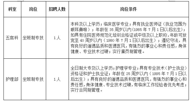 备注:以上岗位须在报名时取得相应学历。有青霉素类过敏史或皮试阳性者不得报考护理岗位。