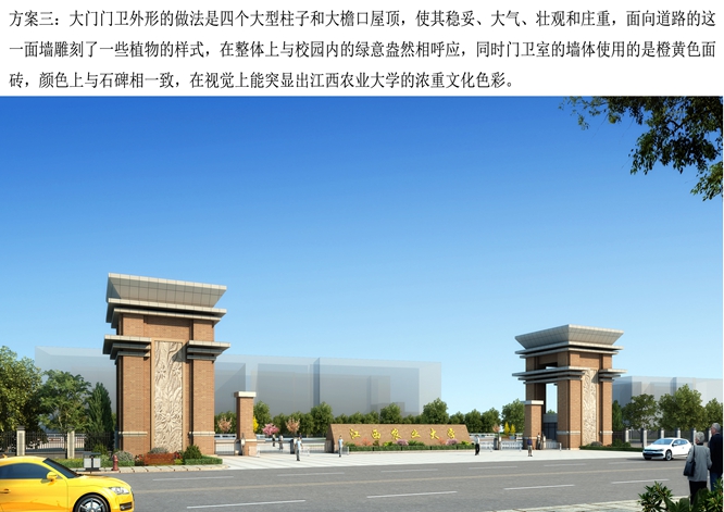 ac米兰官网中文网站南大门设计方案,初步选定了江西省建工集团有限责任公司的三个设计方案。现将设计方案的效果图及相关说明上网公示,欢迎广大师生员工和关心ac米兰官网中文网站校园建设的社会各界人士踊跃投票,选出自己喜欢的设计方案,并对其中的设计方案进行具体评价。