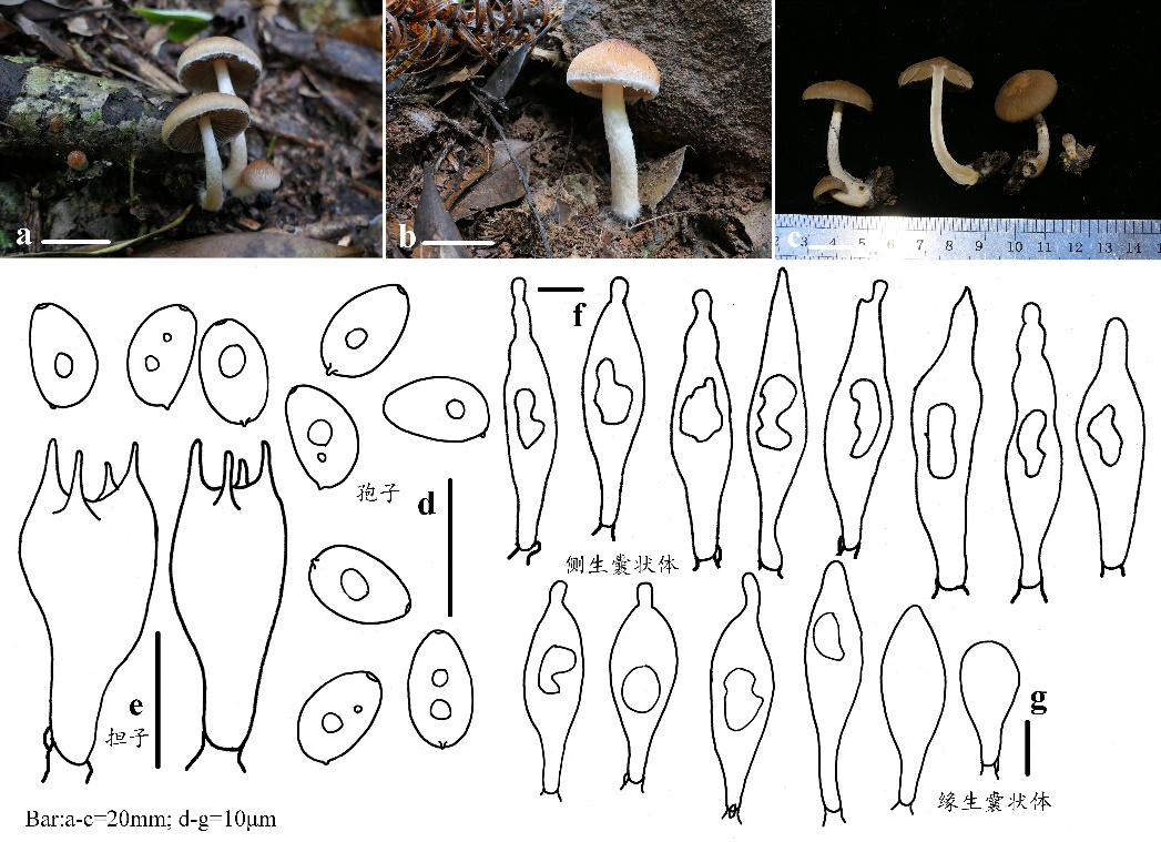 据悉,油囊蘑属Typhrasa是小脆柄菇科内形态特征非常特别的属,主要在于其菌盖呈水浸状褶皱,侧生囊状体具有非常明显的黄褐色油滴。该属物种数量稀少,之前全世界仅报道2个种,分布于欧洲、美洲、大洋洲。颜俊清首次采集到油囊蘑属的物种是在2018年于江西九连山。当时把标本带回实验室经过形态鉴定及DNA序列比对研究,猜测该物种可能是一个新种,但只采集到一个子实体,且子实体的完整度不高。直到2020年在武夷山国家公园桐木村,又发现了这个物种,并采集到多个子实体。这次收集到了该物种足够多的标本及形态特征信息,才将物种正式发表出来,并命名为多形油囊蘑Typhrasa polycystis J.Q. Yan & S.N. Wang,“多形”的命名取自其多样的囊状体形态。多形油囊蘑的发现,极大丰富了油囊蘑属的分布范围,为油囊蘑属物种的分布、起源、演化等研究提供了重要数据。