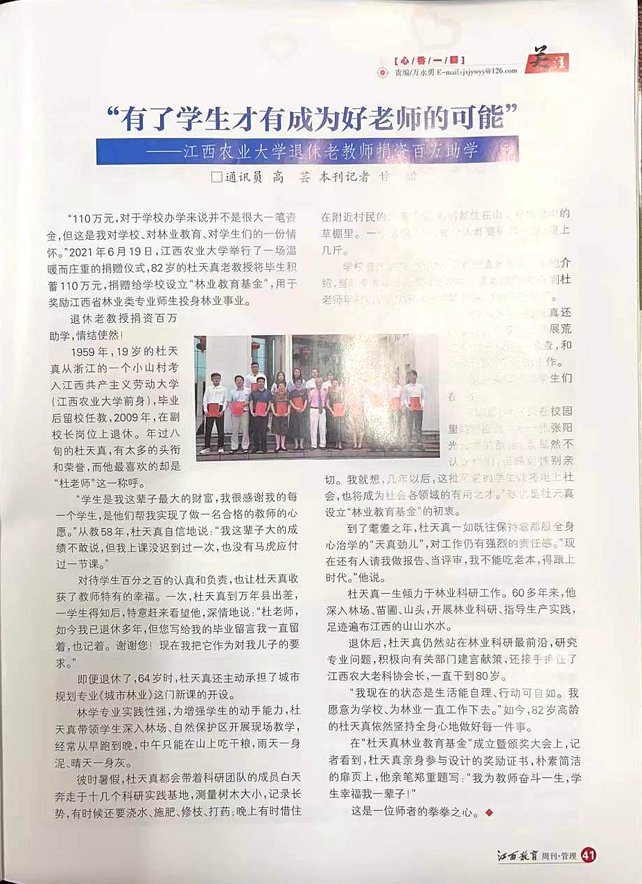 【江西教育期刊】有了学生才有成为好老师的可能——ac米兰官网中文网站退休老教师捐资百万助学