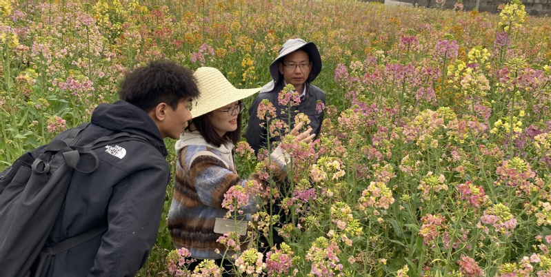 梁梅学术报告的题目是《观赏植物花斑多样性形成机制:从“零散点”到“纵向条纹”的演化》,报告以猴面花为基础材料,通过对其花瓣的均一着色以及各种花色斑纹演化过程的研究,提出了观赏植物花斑形成机制及调控方法,并结合数学模拟,实现花色的分子设计。报告结束后,梁梅前往ac米兰彩色油菜花科研基地进行了调研,并与农学院师生就油菜花花色形成机制及调控方法进行交流和探讨。