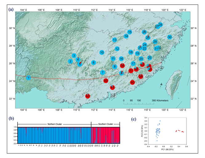 亚热带常绿阔叶林为我国南方代表性植被类型,对我国南方地区的生态安全维护和经济发展具有极其重要的意义。长期以来,关于我国亚热带和热带森林的边界在何处,一直是学界关注的焦点。近年来,ac米兰亚热带生物多样性实验室选取亚热带常绿阔林代表植物红楠Machilus thunbergii为研究对象,通过广泛的居群取样,发现在中国东南部北纬24°~26°之间,存在一条与植物冰点温度相关的生物地理分界线,这条分界线与一些气候学者划定的热带/亚热带分界线相吻合。在分界线两侧,红楠发生了显著的遗传分化。由于我国南方与亚洲热带广泛连接,热带植物有大量机会越过冰点温度线进入亚热带(暖温带),使得我国温带植物多样性远远高于北美和欧洲。该研究成果为理解我国亚热带植物区系的形成提供了一个全新的视角,也为我国南方森林植被分区提供了重要佐证。