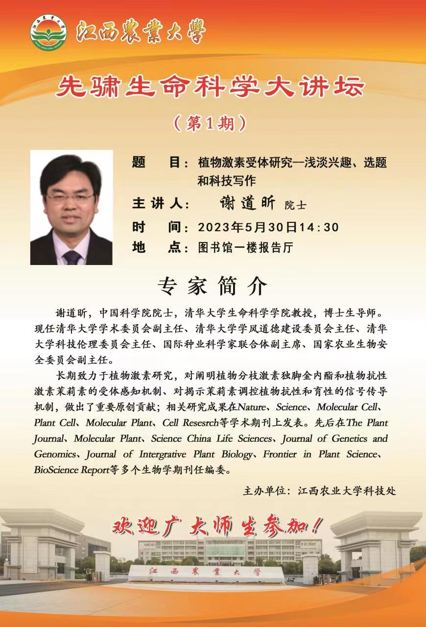 先骕生命科学大讲坛:植物激素受体研究——浅淡兴趣、选题和科技写作