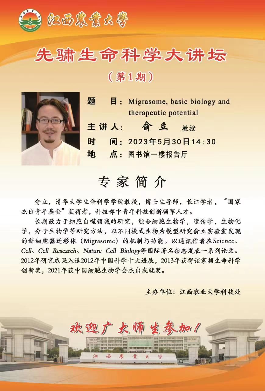 先骕生命科学大讲坛: Migrasome, basic biology and therapeutic potential