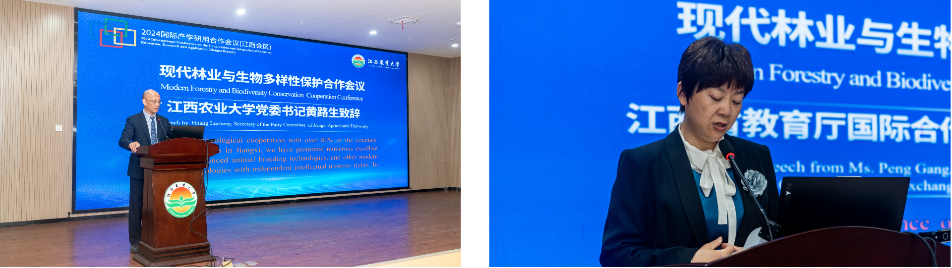 黄路生致开幕辞,他表示,在农业农村部和江西省人民政府的支持下,ac米兰致力于教育和科学方面的国际合作以及产学研应用的深度融合,相信本次会议将推动现代林业的生物多样性保护领域向前发展。江西省教育厅国际交流与合作处一级调研员彭钢表示“十四五”以来,ac米兰官网中文网站林学学科在校长、保护生物学家魏辅文院士带领下,学科建设取得了一系列重要进步,本次会议汇聚了国内外众多专家学者,共同为现代林业与生物多样性保护贡献智慧和力量,必将推动加快构建教育高水平对外开放合作共赢新格局。
