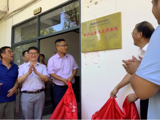 赵应丁教授与井冈山周波副市长共同为拿山镇项目应用示范基地揭牌