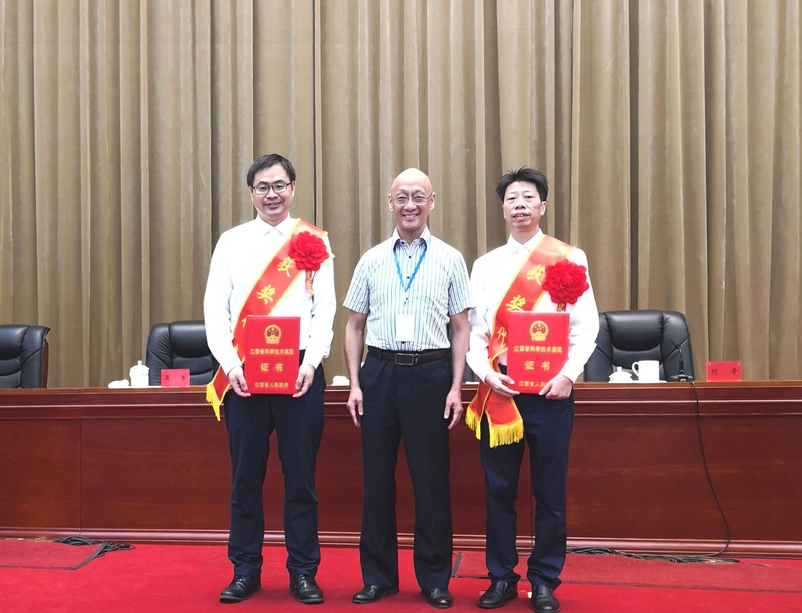 2020年度,ac米兰共获5项科技成果奖励。其中,科技处处长游金明教授牵头主持完成的项目“仔猪肠道屏障功能及机体免疫调控关键技术研发与应用”、林学院副院长陈伏生教授牵头主持完成的项目“丘陵山区杉竹林地力提升与高产高效高值协同培育技术集成及示范”均荣获江西省科技进步奖一等奖;ac米兰作为参与单位完成的科技成果分别获科技进步奖三等奖2项、自然科学奖三等奖1项。江西省科技进步奖一等奖获得者游金明和陈伏生两位教授作为获奖代表接受省领导和中科院院士颁奖。