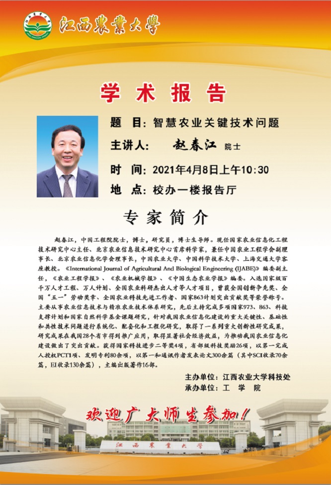 学术报告预告:智慧农业关键技术问题