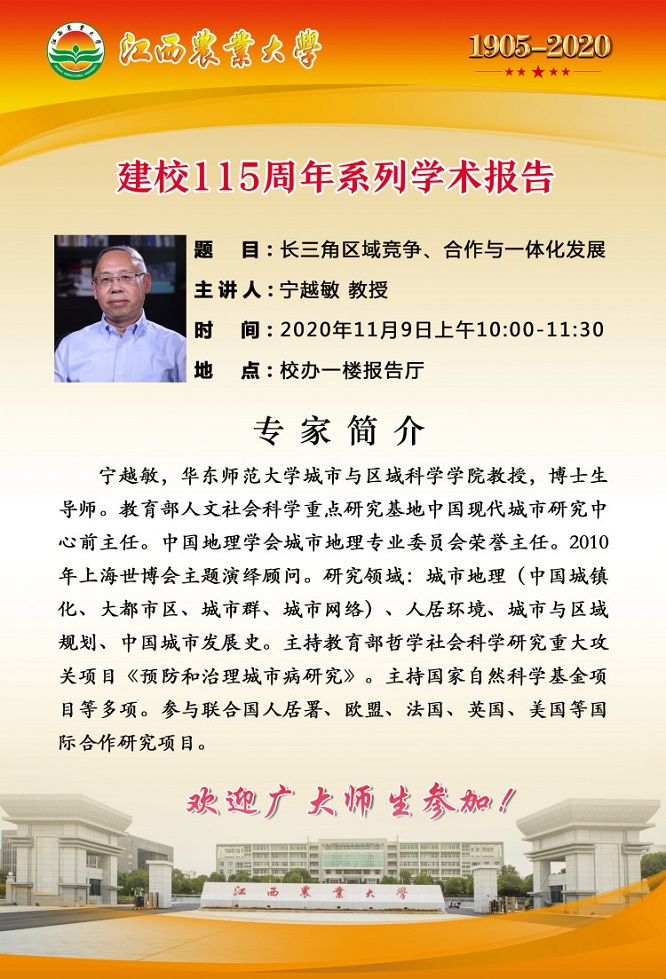 【建校115周年系列学术报告】预告:长三角区域竞争、合作与一体化竞争