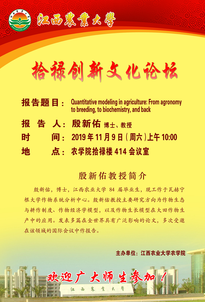 学术报告预告:Quantitative modeling in agriculture: From agronomy to breeding, to biochemistry, and back
