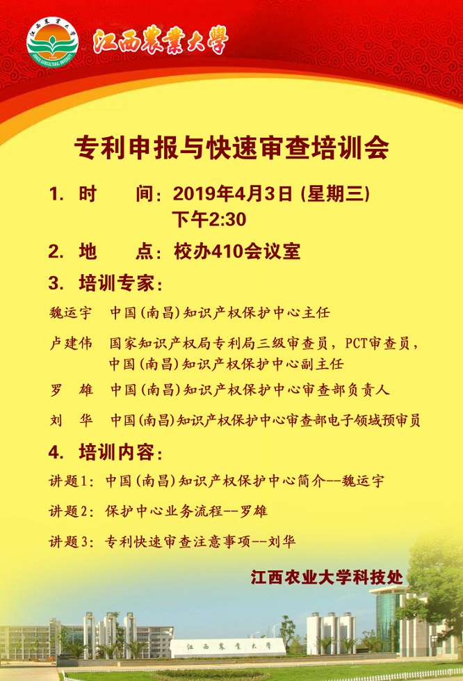 学术报告预告:专利申报与快速审查培训会