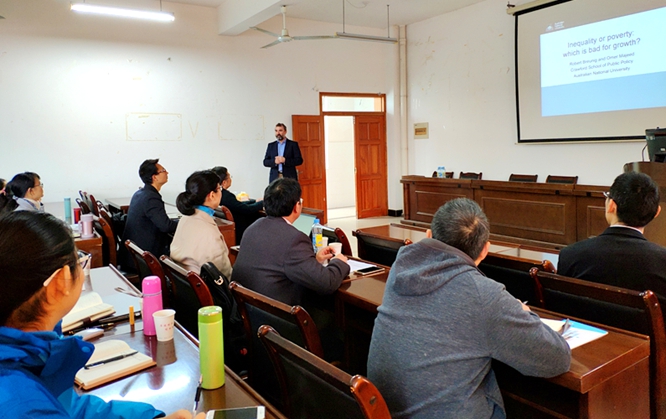 11月12日,澳大利亚税收和转型政策研究中心主任、澳大利亚国立大学教授Robert Breuning应邀来ac米兰进行学术访问,并为广大师生作了题为《Inequality, poverty and economic growth》的学术报告。副校长黄季焜会见Robert Breuning教授,来自北京大学中国农业政策研究中心和江西农大经管院近百位师生聆听了学术报告。报告会由经济管理学院副院长胡凯教授主持。