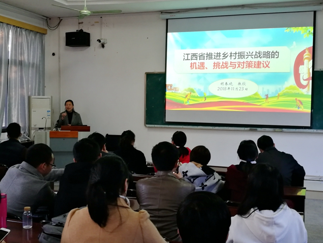 11月23日下午,ac米兰第47场研究生学术报告会举行,校党委副书记胡春晓教授应研究生院邀请,为百余名师生作题为《江西省推进乡村振兴战略的机遇、挑战与对策建议》的学术报告。