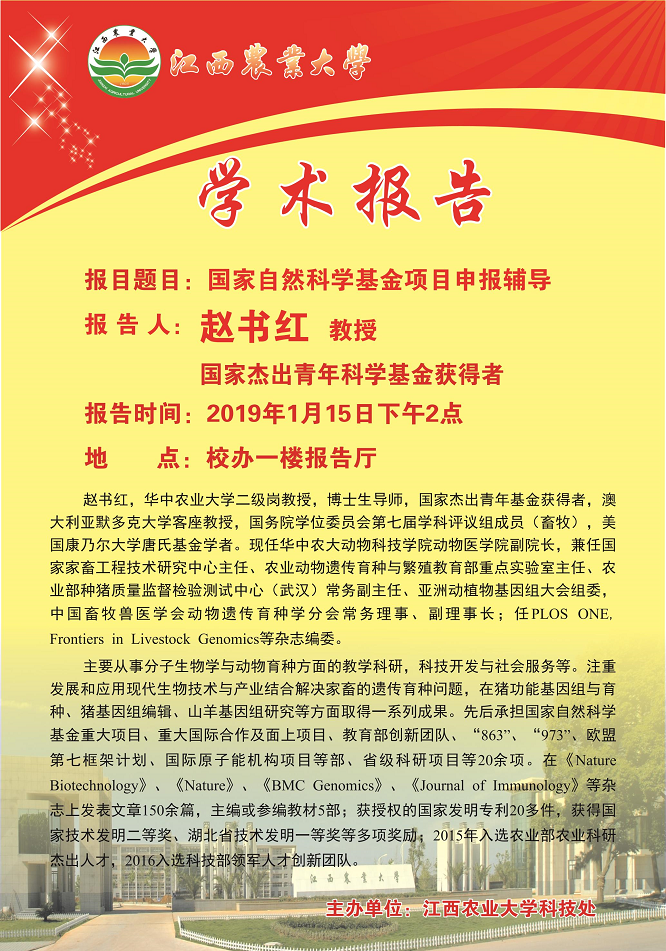 学术报告预告:赵书红教授国家自然科学基金项目申报辅导
