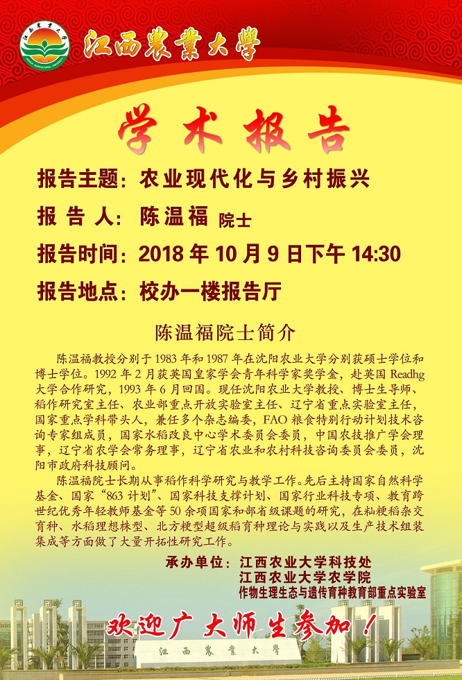 上一条:学术报告预告:新时代农业科技创新与绿色发展战略
