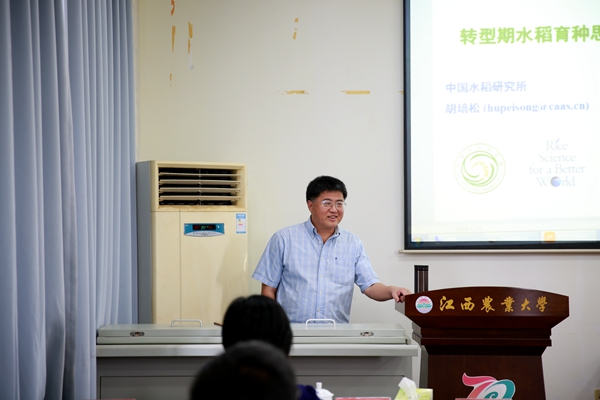 6月2日下午,中国水稻研究所副所长、国家现代水稻产业技术体系遗传育种功能实验室主任胡培松研究员在ac米兰作物生理生态与遗传育种重点实验室作了题为《转型期水稻育种思考》的学术报告。农学院相关专业老师、研究生及本科生约50余人参加了报告会,会议由副校长贺浩华教授主持。