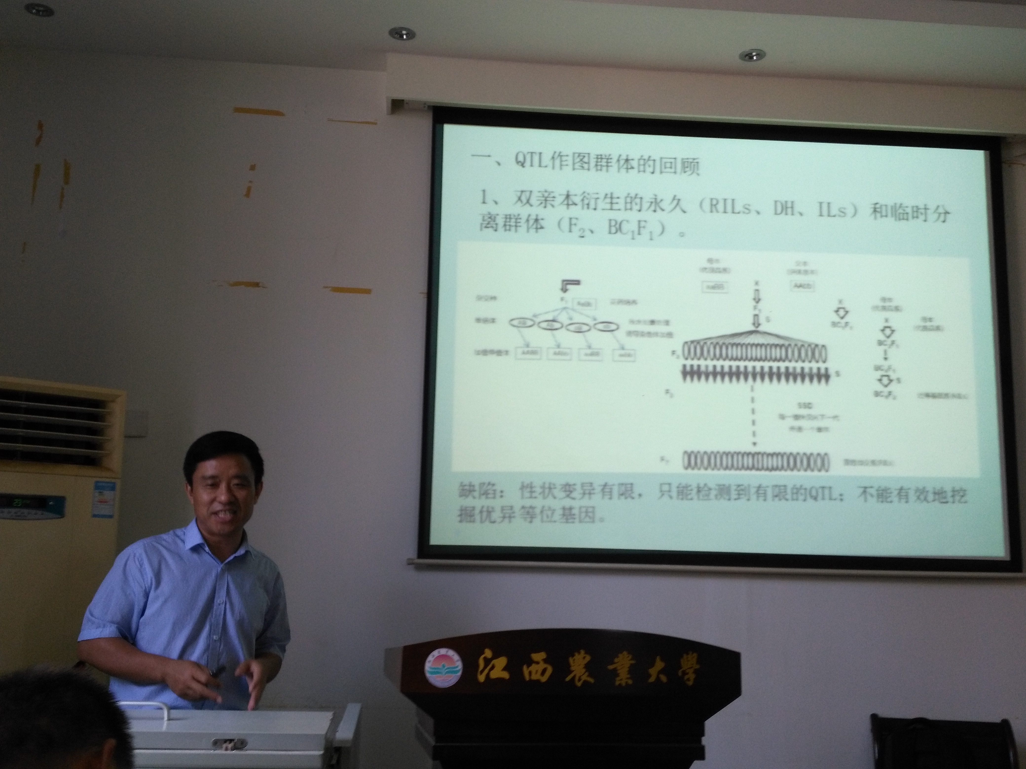 徐建龙研究员首先介绍各种QTL作图群体,并结合自己的研究重点讲述了多亲本衍生群体的特色和优势,如何利用这些群体定位水稻抗旱QTL、产量QTL、孕穗期耐冷QTL。报告中,徐建龙研究员3K重测序资源对水稻重要性状基因定位的优势进行讲解,并详细其在水稻加工和外观品质、水稻黑条矮缩病抗性等QTL的关联定位与候选基因分析的应用。报告结束后,徐建龙研究员与师生们进行深入讨论交流,取得了良好的效果。