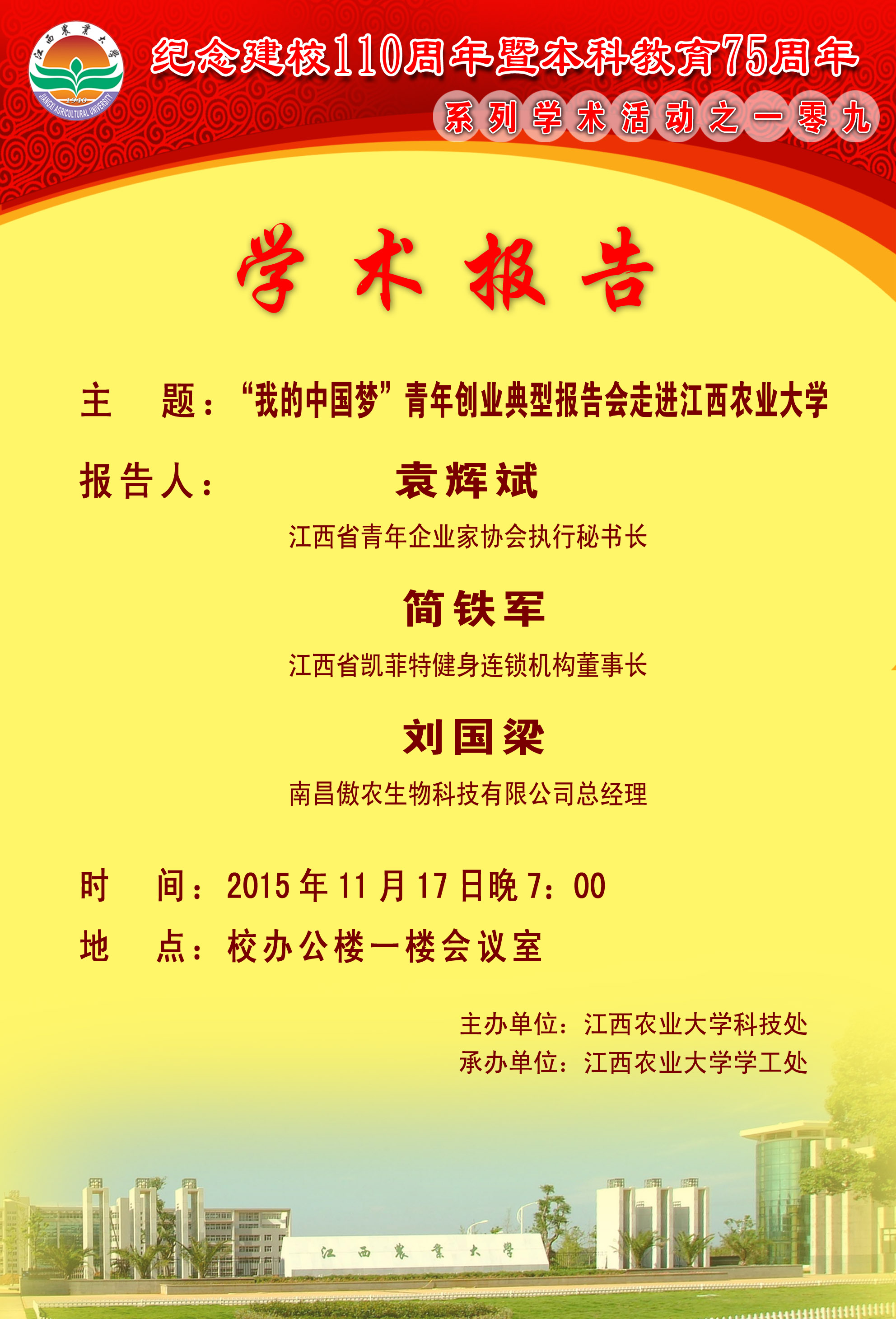 学术报告海报:“我的中国梦”青年创业典型报告会走进ac米兰官网中文网站