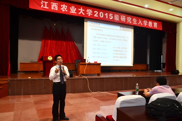 9月16日下午,应研究生院邀请,ac米兰校友、广东省珠江学者特聘教授、华南农业大学动物科学学院院长、博士生导师江青艳教授来到学校,为500余名2015级研究生新生作《浅谈研究生的素质培养》的专题报告。
