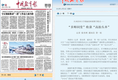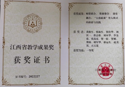 以“大思政课”理念加强课程群建设。学校按照习近平总书记善用“大思政课”的指示要求,全面落实问题式专题化团队教学改革部署要求,加强以习近平新时代中国特色社会主义思想概论课程为牵引的思政课程建设,着力打造特色“农”郁的“大国三农”思政课。2020年下半年起,率先在全省开设《习近平新时代中国特色社会主义思想专题》选修课,2022年进一步规范为必修课,采取问题式专题化团队教学模式,由校领导领衔实行“一课多师”,践行“大思政课”综合改革的守正创新。2023年12月,以《习近平新时代中国特色社会主义思想概论》课程为主体申报的教学成果获江西省教学成果奖(思政专项)一等奖。3门课程获批省级一流或精品课程。