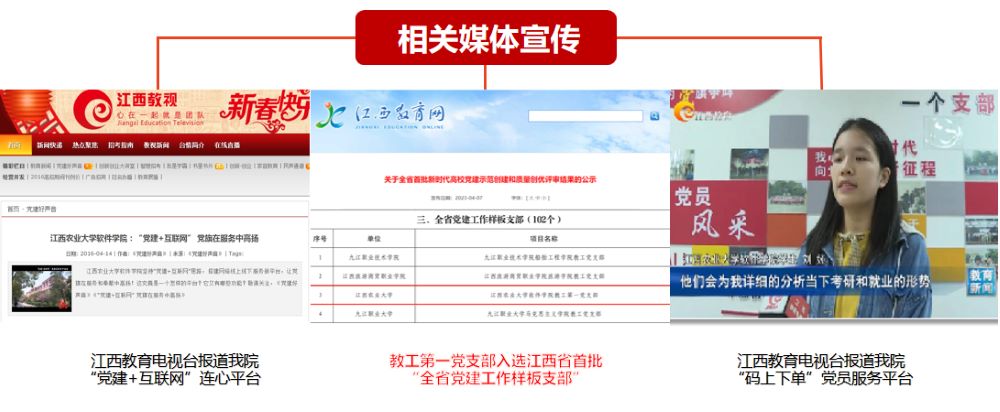 广大师生党员在人才培养、创新创业、教学科研、社会服务等方面奋勇争先,持续发挥党员先锋模范作用,奋力谱写高质量内涵式发展新篇章,涌现出新时代赣鄱先锋、中国大学生自强之星、江西省高校“最美大学生”等一批先进典型。2018年学生党支部作品在全国高校“两学一做”支部风采展示活动中荣获优秀工作案例,2021年学院在全省基层党组织书记党课课件评选中荣获二等奖,2023年教工第一党支部入选江西省首批“全省党建工作样板支部”。