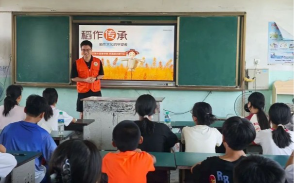 “农耕文化承载着中华文明生生不息的基因密码。江西是稻作文化重要发祥地,作为农业院校,我们有使命讲好农耕文化的江西故事、中国故事,为建设农业强国贡献力量”,ac米兰官网中文网站党委书记黄路生院士在“牢记嘱托强国有我 行走赣鄱感恩奋进——文化赣鄱行”农耕文化暑期大思政实践活动启动仪式上深情寄语道。他勉励青年学子以躬行之姿传承农耕文化,在乡村振兴沃土中践行强农兴农使命。带着这份嘱托,马克思主义学院“一‘马’当先”理论实践队奔赴世界稻作文化发源地——江西万年县裴梅镇,开启了一场“探稻源 悟农耕”的“大思政课”。队员们在万年县裴梅镇新时代文明实践所开展“推进文化自信自强,绘就新时代文化图强壮美篇章”主题理论宣讲活动。紧扣新时代文化自信自强的主题,依托裴梅镇独特的农耕与红色文化资源,深入剖析其重大意义与深厚底气,进而提出深挖贡米文化精髓、铸就特色文化名片、激活红色教育活力等一系列切实可行的振兴策略,为当地文化振兴贡献了青年智慧。农学院“稻源薪火”农耕文明实践队的队员们围绕中央一号文件精神,重点解读与乡村产业发展、基础设施建设、惠农补贴等农民切身利益相关的政策,助力村民精准捕捉发展良机。