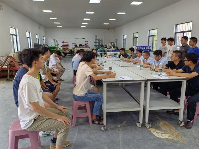 在农机小院院内,展示着各种由小院师生研发的农机设备,小院研究生对设备进行了详细讲解并熟练操作。座谈会上,工学院负责人介绍了工学院的学科建设情况、农机小院建设情况,与会师生围绕研究生实践创新能力培养全过程中教、学、思、践等环节做了深入交流。
