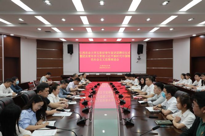 5月16日下午,ac米兰“五彩好青年”宣讲团聘任仪式暨团员青年学习贯彻习近平新时代中国特色社会主义思想推进会在校办二楼圆形会议厅举行。校党委组织部、宣传部,校团委、各学院团委有关同志及“五彩好青年”宣讲团全体成员参加会议。