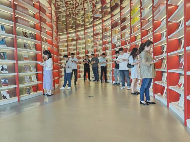 来到省图书馆的红色图书馆,支部党员同志沉浸式体验了红色文化:红色记忆重温、红色文创展示、红色足迹追寻、红色基因传承、红色场景体验、红色江西宣传、红色影音欣赏、红色文献阅览依次体验,身临其境般全景式追寻红色足迹;在映山红主题活动展区,讲解员深度解读《从新文化到五四》《习近平在梁家河》,通过加深对“自找苦吃”的深刻理解,大家从党的奋斗历程中汲取了继续前进的智慧和力量。
