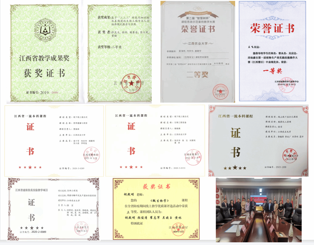 这十年,学院积极响应新工科、新理科建设理念,致力于培养生物与医药行业的卓越人才。生物工程专业在2015年江西省高校专业综合评价中位列本专业全省第一,2018年入选“江西省一流优势专业”,2019年入选国家一流专业建设点,2020年省一流专业验收获评“优秀”,为ac米兰唯一验收优秀的专业,2021年被评为江西省四星级专业,排名全省第二,2022年顺利接受工程教育专业认证线上进校考查。制药工程专业在2018年江西省专业综合评价位居省内排名第二,是2019-2021年度校级重点建设专业,在2021年被评为江西省一流特色专业。生物技术专业为江西省特色专业、2019-2021年度校级重点建设专业、省内首设食用菌方向。十年来,学院坚持“教学优先、教师优先、学生优先”的工作原则和“教学是否满意、教师是否满意、学生是否满意”的工作标准,树立“以学生为中心、面向产出、持续改进”的教学理念。先后获批省级以上教学研究课题41项、校级教学研究项目36项,荣获省级教学成果奖3项,校级教学成果奖 11项;《生物工程设备》、《微生物学》、《制药化工原理》和《营养健康与美容》等课程遴选为省级一流课程;“角蛋白酶中试发酵技术虚拟仿真实验”获批江西省虚拟仿真实验教学项目;“生物工程核心主干课程群教学团队”遴选为江西省高水平本科教学团队;应用生物技术实验教学示范中心获批江西省实验教学示范中心,先后投入近千万元建立了省内高校唯一发酵中试车间和多功能发酵产品提取生产线以及应用生物技术实训基地、食用菌基地等校内实训基地;与国家生化工程技术研究中心(上海)、四特酒责任有限公司、江西李渡酒业有限公司、上海天慈国际药业、江西一方天江药业有限公司等27家单位共建了校外实习基地。学院狠抓学风建设,考研升学率始终名列全校前茅,2022年升学率高达45.28%。