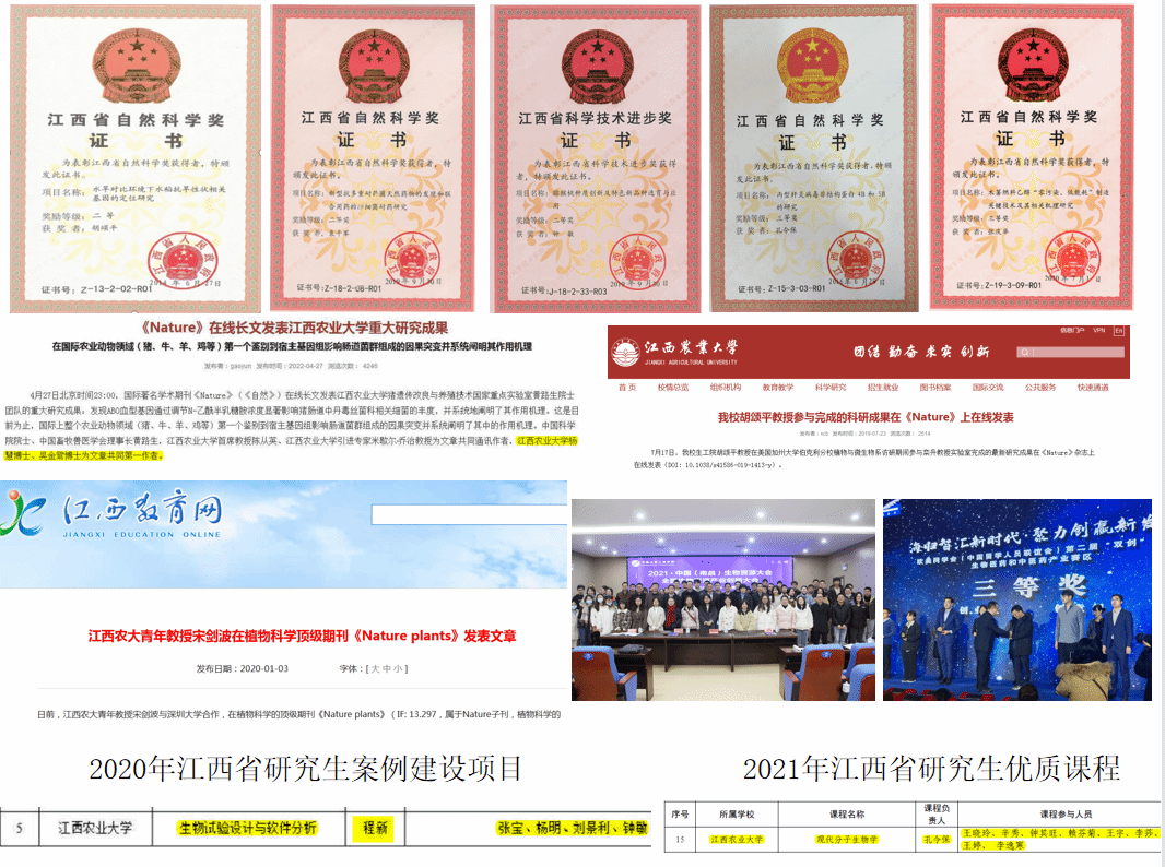 这十年,学院高举创新发展的理念旗帜,构建高层人才培育矩阵,学科建设取得高质量发展。生物学为江西省“十二五”重点学科与示范性硕士点,校“十三五”重点建设学科和省博士点建设学科;生物工程学科为校“十三五”重点学科和博士点建设学科,2017年生物工程一级学科获批硕士授权点,填补了我省该学科没有硕士学位授权点的空白。十年来,学院引进海内外高层次人才32人,10余名教师赴国外访学,培育省主要学科学术和技术带头人3人、省高层次高技能领军人才1人、省百千万工程人选2人、省杰出青年基金获得者3人,晋升博士生导师7,外聘兼职教授5人。凭借着前所未有的决心和耐心,学院筑巢引凤,获批江西省农业微生物资源开发与利用工程实验室、江西省菌物资源保护与利用重点实验室2个省级重点实验室,南昌市发酵应用技术重点实验室、南昌市生物资源保护与利用重点实验室、南昌市动物病毒与基因工程重点实验室、南昌市食药用菌重点实验室4个市级重点实验室,以及7个校级研究机构等科研平台。获批国家级科研项目62项,省部级项目近100项,各类项目总经费近5000万元。发表学术论文800余篇,其中,学院教师以第一作者身份在Nature等期刊上发表高水平论文200余篇。荣获江西省科技成果二等奖3项、三等奖2项,欧美同学会(中国留学人员联谊会)第二届“双创”大赛三等奖1项,江西省高校科技成果一、二、三等奖6项。授权国家发明专利12项,成果转化费用上亿元。获批1门江西省级研究生优质课程和1门省级案例建设项目,出版专著3部,主编或副主编教材6部。研究生数量从10余人增加到206人,24人次获批省研究生创新基金项目。学院研究生培养质量不断提升,获江西省优秀硕士毕业论文28篇。研究生一次就业率92%以上,大部分选择继续深造的硕士生进入了985院校或中科院攻读博士。学院强化对外学术交流,分别承办2018中国微生物学会年会、2021中国(南昌)生物资源大会等大型学术会议,参加国际和国内学术会议年均近100人次。