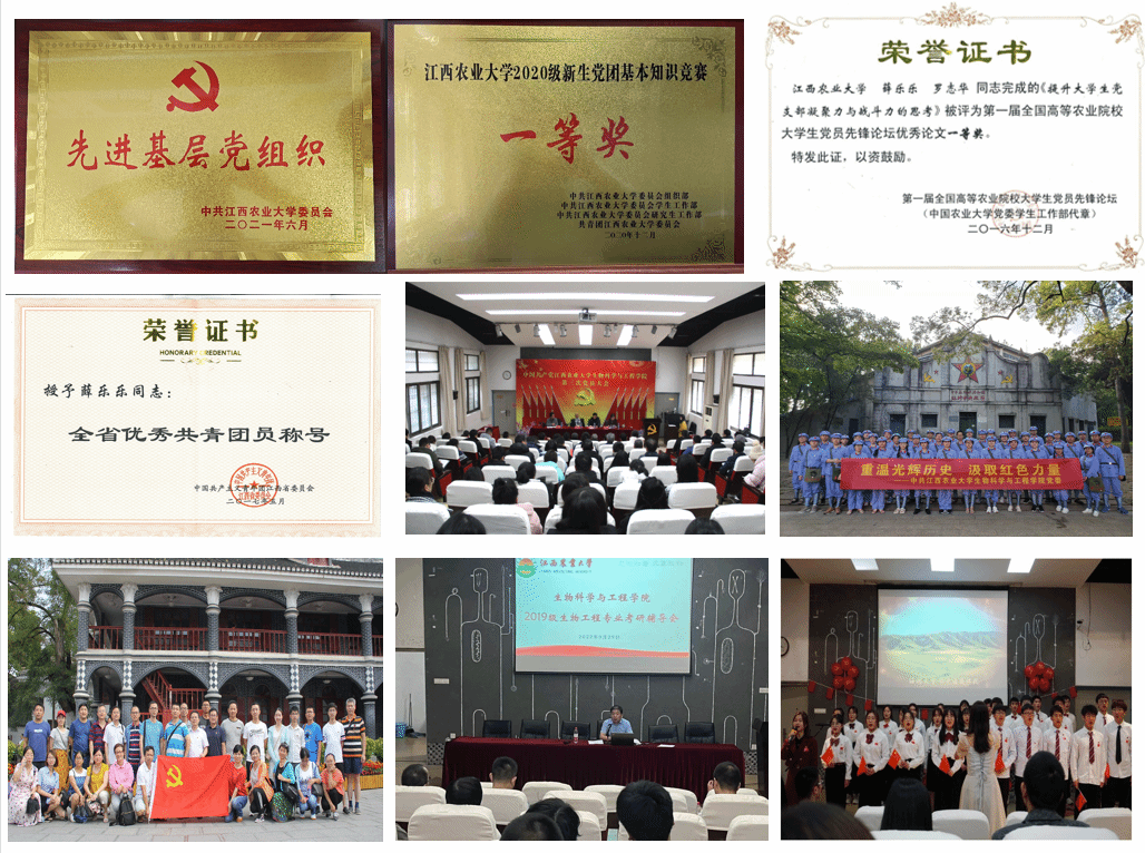 这十年,学院全面贯彻落实新时代党的建设总要求,严格落实党建工作责任制,坚持以高质量党建引领高质量发展。坚持铸魂立心,强化理论武装,推进理论学习常态化。深入开展“不忘初心、牢记使命”主题教育和党史学习教育;强基固本,扎实推进党建“三化”建设,推动党建与学科发展、人才培养、学风建设深度融合,构建了“菌菇成长3+1”党建品牌建设,成立了考研工作室助力考研指导帮扶,完善了对外科技服务管理办法,建立了科技咨询、科技服务的骨干队伍和长期合作基地。学院党员教师每年进行科技服务不低于50人次,肩负起“强院兴校”的光荣使命,倾情服务于江西地方经济发展,为推进我省高质量发展贡献力量。学院先后荣获先进基层党组织、校新生党团知识基本知识竞赛一等奖、全国农林水高校第一届党建论坛一等奖、全省优秀共青团员、全省高校优秀心理委员等荣誉,以实际行动践行服务宗旨,厚植为民情怀,使基层党组织的战斗堡垒作用发挥更明显,党员的先锋模范作用发挥更突出。