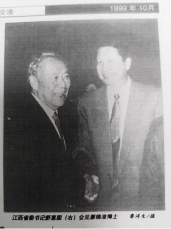 1990年10月,海峡两岸农业交流会在南京举行,廖绵浚应国家农业部邀请参会。当时江西的“山江湖工程”是会议的热门话题之一,由此引发了他对家乡生态环境建设的关注。会后,他回到了江西奉新县,在感受家乡翻天覆地变化的同时,也发现家门口的奉新河床升高了,原本青翠的山峦也变得裸露了,并暗下决心:把自己的一生从事水土保持工作的经验和成果奉献给故乡,让江西的山常青,水更绿。