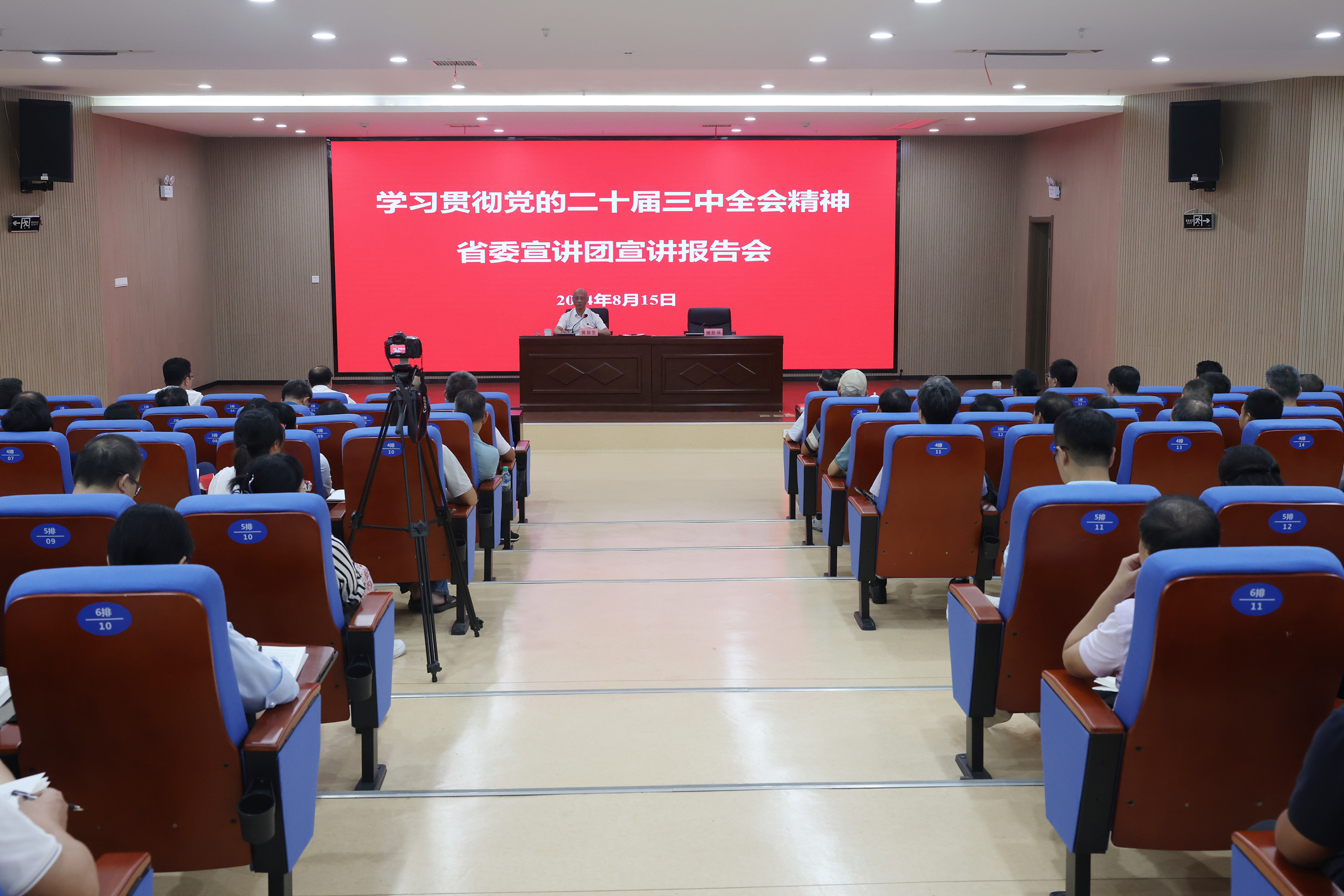 8月15日上午,学校举办学习贯彻党的二十届三中全会精神省委宣讲团宣讲报告会,省委宣讲团成员、校党委书记黄路生院士作宣讲报告,校领导,副处级以上领导干部,附属单位主要负责人,各学院辅导员、思政课教师、离退休老同志及在校大学生代表近200人现场聆听。副校长樊后保主持报告会。