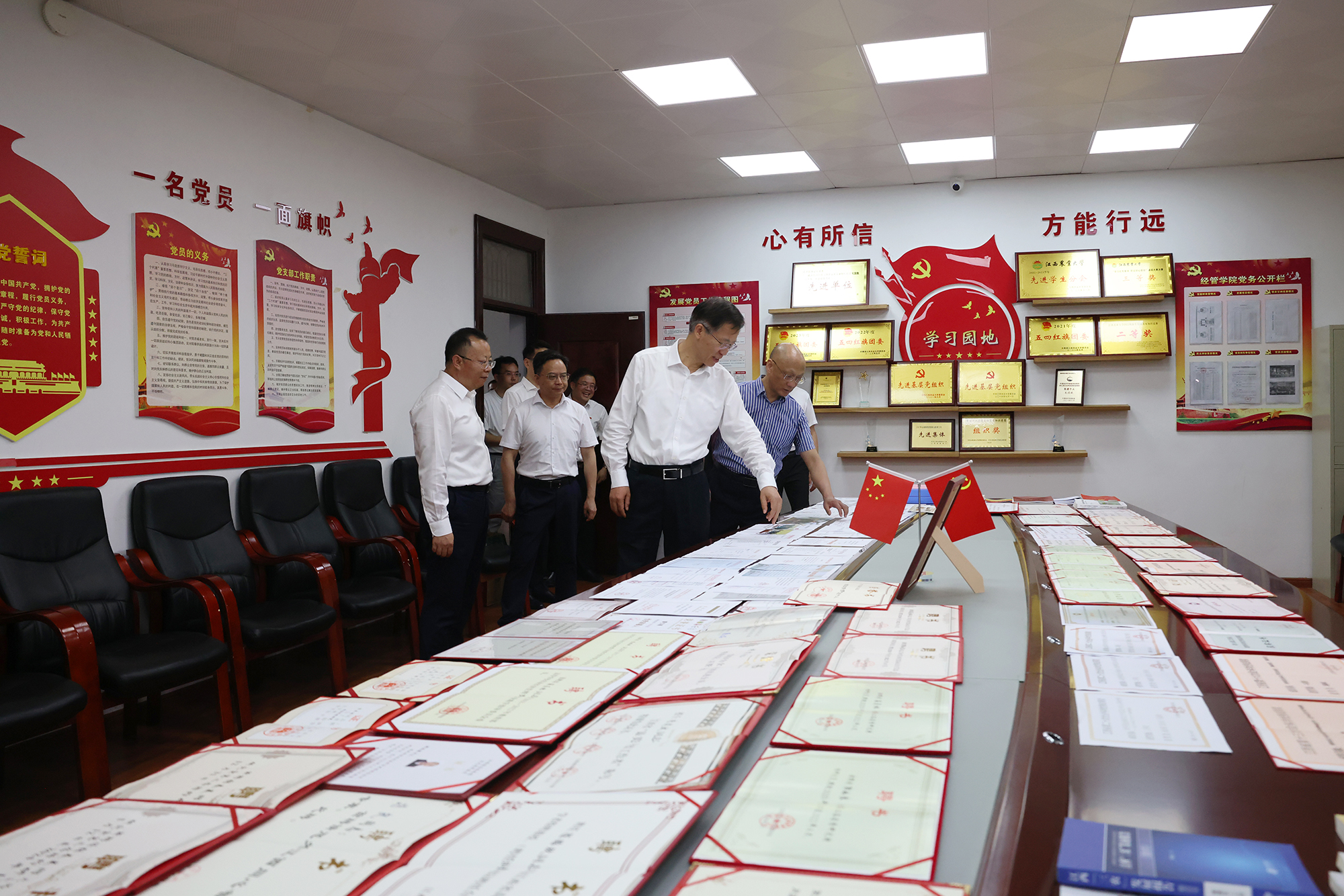 5月22日,省委常委、省委组织部部长庄兆林来ac米兰调研党纪学习教育工作。他强调,要深入学习领会习近平总书记关于全面加强党的纪律建设的重要论述,贯彻落实党中央决策部署和省委工作要求,推动党纪学习教育走深走实,为奋力谱写中国式现代化江西篇章提供坚强保障。省委组织部副部长王小林、省委教育工委副书记郑志军,校党委书记黄路生院士、校纪委书记乔金霞、副校长张高亮陪同。