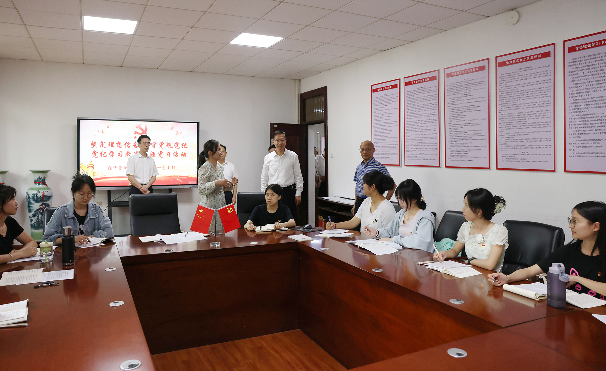庄兆林了解学校党纪学习教育和科研创新情况。他指出,高校承担着为党育人、为国育才的重任,要以党纪学习教育为契机,加强对广大师生党员特别是青年党员干部的教育引导,压实党支部直接教育、管理、监督党员的职责,推动党员干部知敬畏、存戒惧、守底线,着力营造风清气正的育人环境和科研环境。