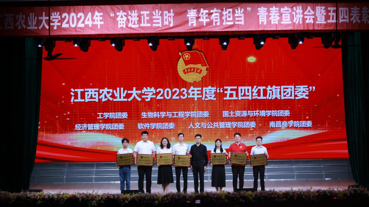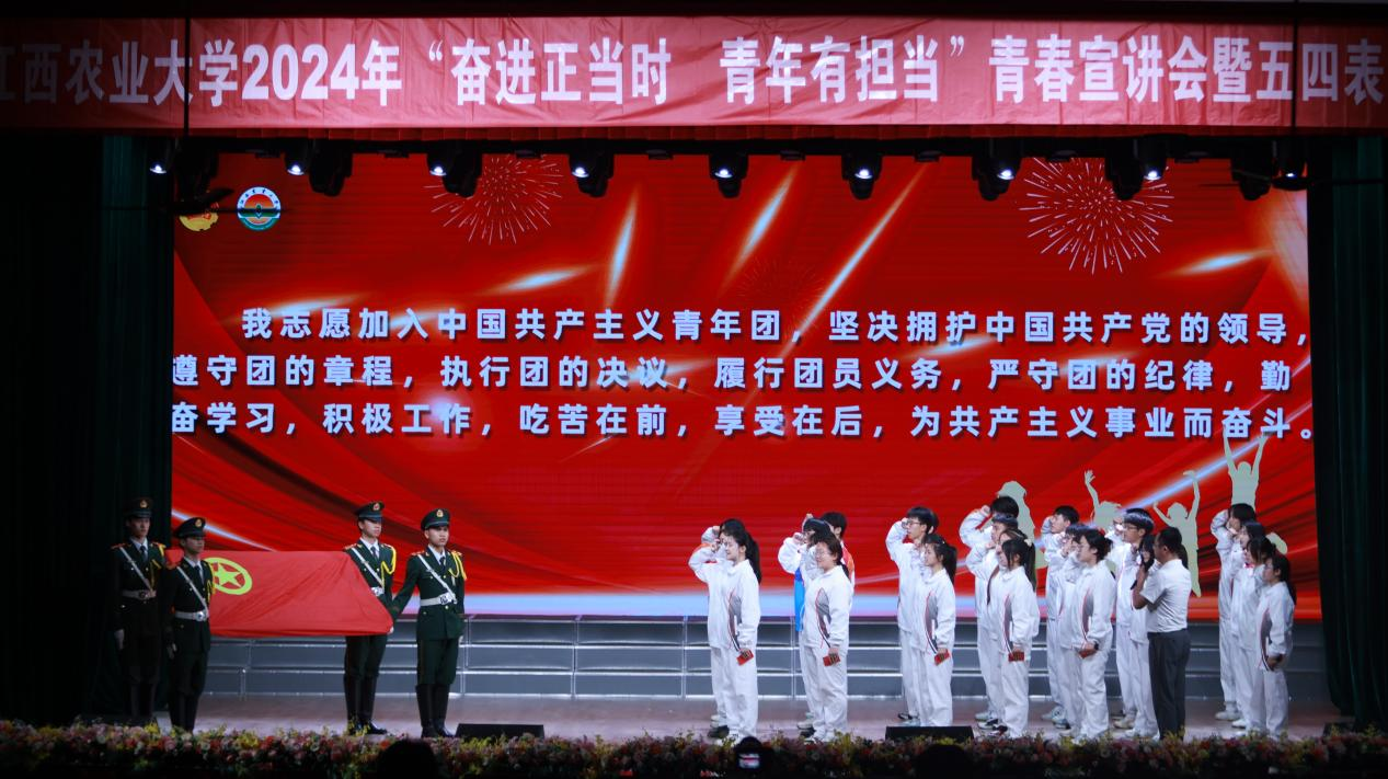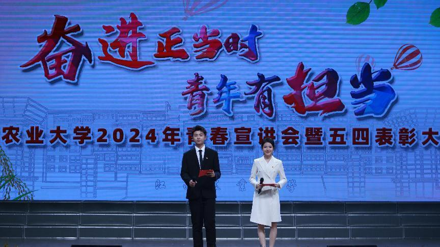 为深入学习贯彻习近平新时代中国特色社会主义思想和党的二十大精神,动员引领农大学子在继承和发扬五四精神中争当“五个模范”、做到“五个带头”,展现农大学子朝气蓬勃、积极向上的精神风貌,4月29日晚,ac米兰举办“奋进正当时 青年有担当”2024年青春宣讲会暨五四表彰大会。副校长张高亮,党办校办、组织部、宣传部、学工部、教务处等相关职能部门负责人、各学院党委副书记、团委书记、团干部代表和学生代表共计1000余人一同观看了宣讲会。