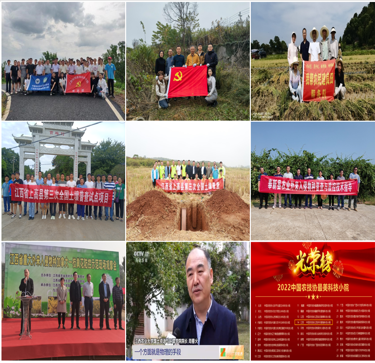 国土学院拓宽横向开发渠道,整合科研队伍,狠抓自然科学基金和社会科学基金的申报和实施工作,规范横向项目管理。近年来,学院承担国家自然科学基金项目、国家社会科学基金项目、国家“973”子项目、国家重点研发计划项目、省部级及市(厅)级各类课题233项(项目经费达4000余万元),发表论文490篇,出版著作23部,获国家级、省部级等科技奖励13项,获专利52项,其中一大批科技成果在社会上得以广泛应用,取得良好的经济效益、社会效益和生态效益。学院通过科技特派团、科技小院、专家下乡、农业大讲堂等形式开展科技服务,有效解决了农业科技成果转化“最后一公里”的难题。牵头建设的井冈蜜柚科技小院深入开展了精准科技推广和科普服务,初步形成了“一区两地”(井岗农高区和吉水、遂川县)科技服务构架。荣获“十佳中国农技协科技小院”、“全国最美科技小院”、“中国农技协科普教育基地”称号。组建的江西省外来入侵物种普查专家组,承担全省外来入侵物种普查的技术总负责和质控总负责。针对江西省重大危害外来入侵物种开展了一系列的调查、监测与防控示范工作,得到央视农业农村频道、江西一套、九江市电视台和江西晨报的采访报道。配合农业厅,组建受污染耕地安全利用省级专家组,负责抚州和宜春两个地市的受污染耕地安全利用技术指导工作。承担的第三次全国土壤普查江西省上高县试点工作顺利通过验收。