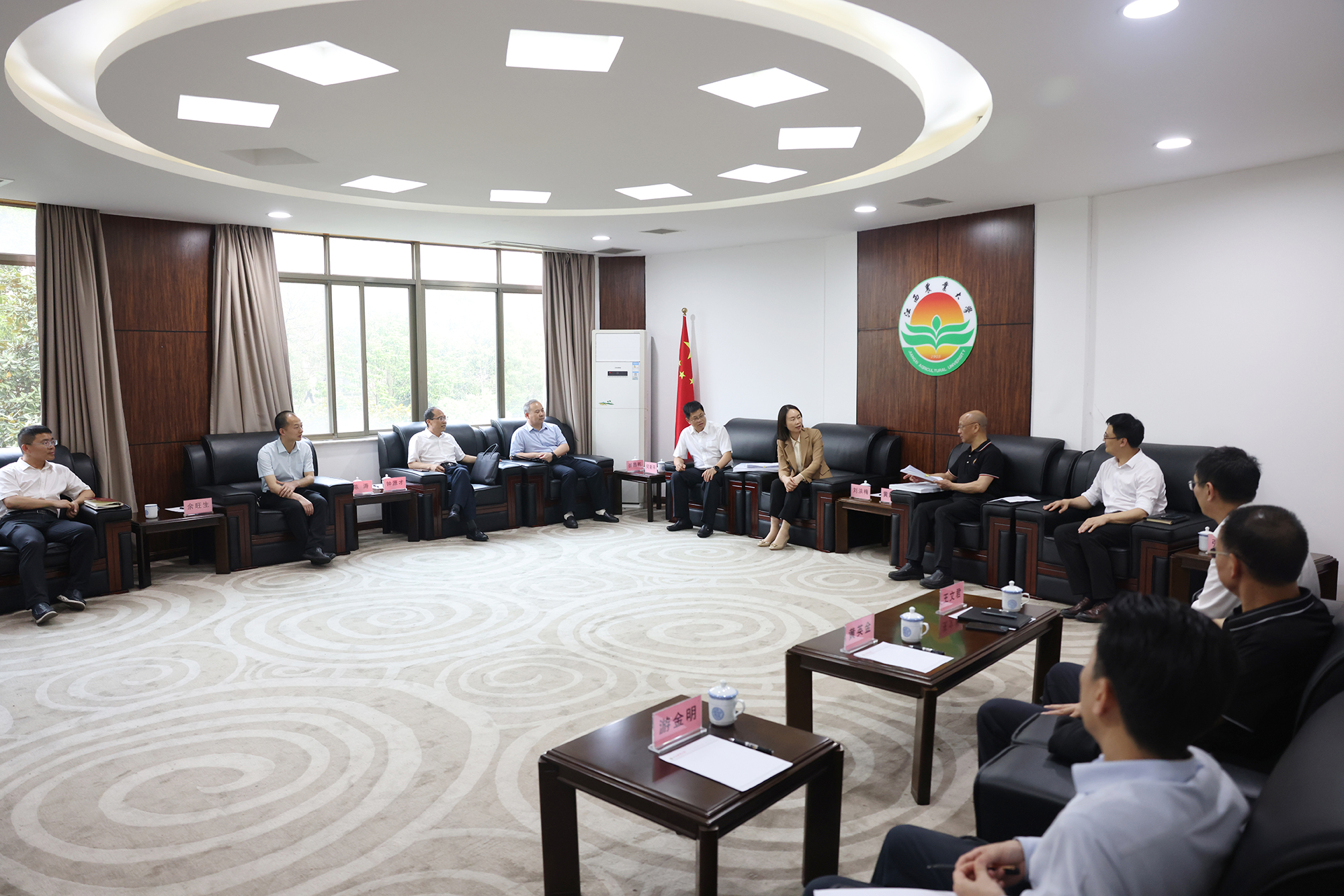 4月15日下午,上犹县委书记刘洪梅,县委副书记何新平,上犹县委办、农业农村局、教科体等单位负责人来校交流并座谈。校党委书记黄路生院士,副校长张高亮、王文君,原副校长黄英金,学校党办校办、科技处负责人参加座谈。