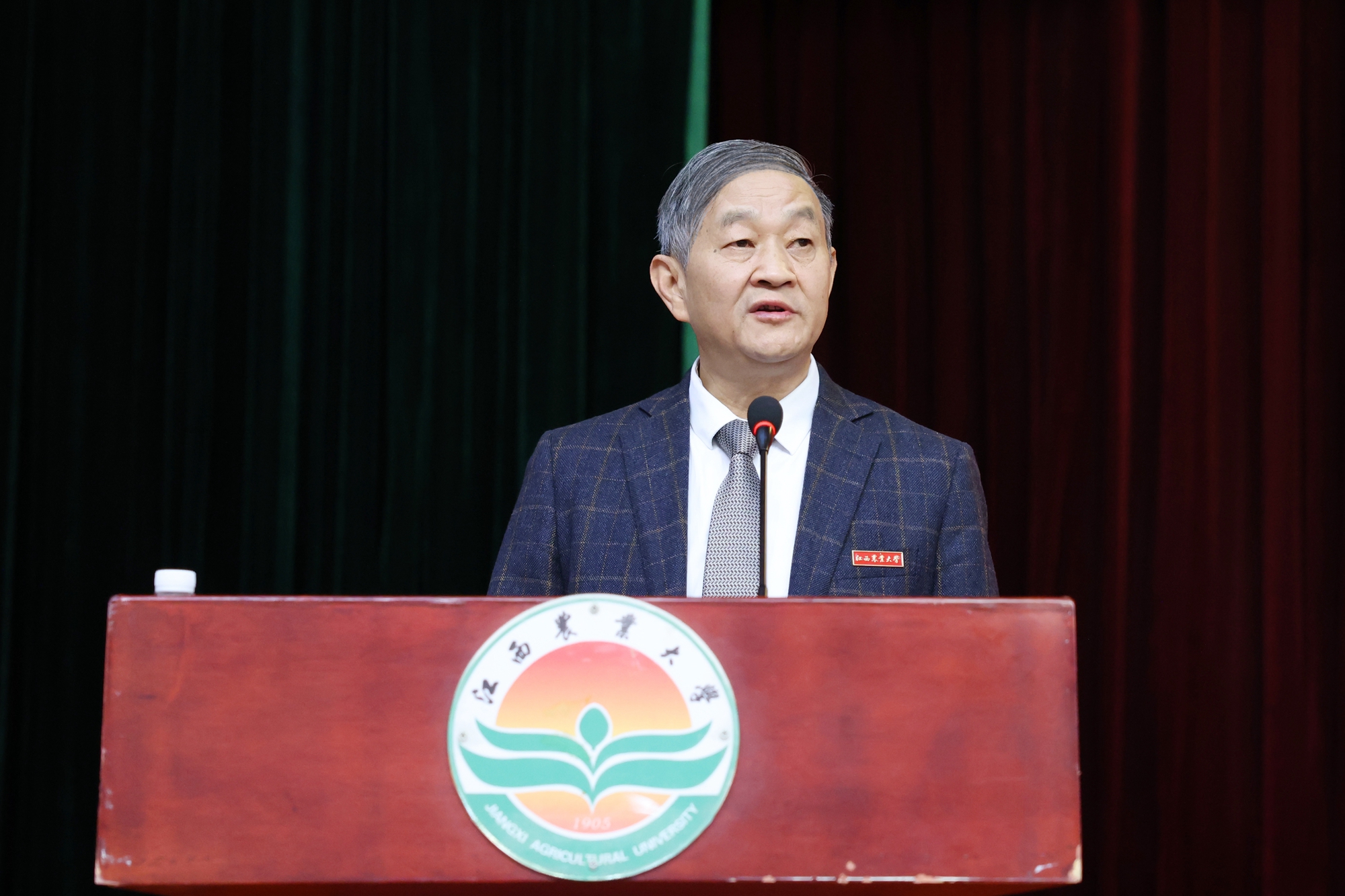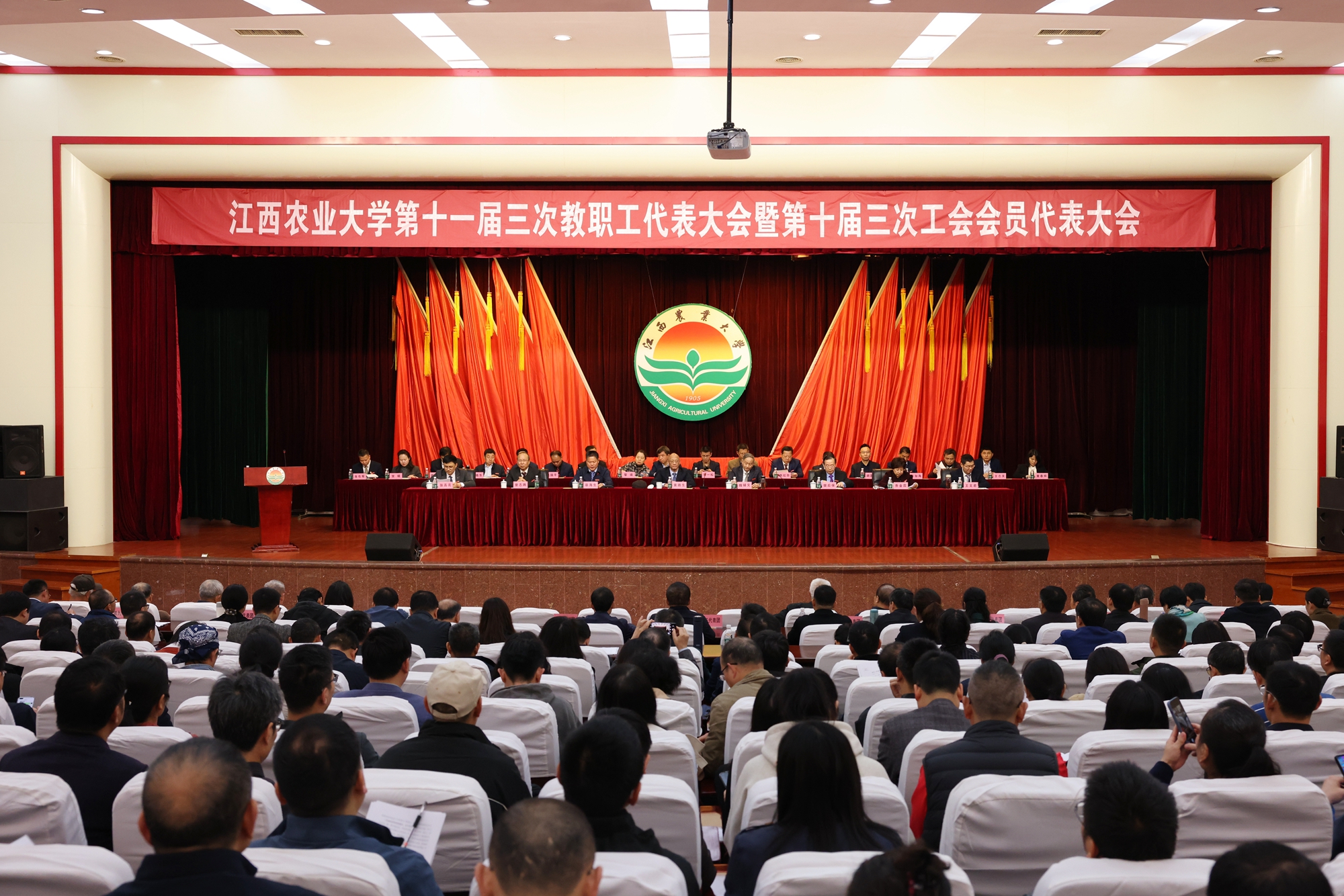 校长魏辅文院士作校长工作报告。他指出,2023年学校坚持以习近平新时代中国特色社会主义思想为指导,深入学习贯彻落实党的二十大精神和习近平总书记考察江西重要讲话精神,紧扣高质量发展主题,聚焦“走在前、勇争先、善作为”的目标要求,全面贯彻落实“以生为本”教育理念和“人才强校”战略,较好地完成主题教育、巡视整改和综合考核等专项工作,大力推进内涵式发展,着力提升核心竞争力,并围绕坚持立德树人根本任务,五育并举助力学生成才;坚持推进一流本科教育,人才培养质量稳步提升;坚持学科建设龙头地位,研究生教育持续深化;坚持实施人才强校战略,师资力量不断增强;坚持科研创新顶天立地,强农兴农本领显著增强;坚持破解发展改革难题,努力建设宜学宜教宜研美丽校园等方面,全面回顾总结学校2023年各项工作。魏辅文表示,在实现内涵式高质量发展道路上,学校还面临一流学科建设与国家“一流”学科及标杆学科相比有差距,学生思政成果不突出,宜学宜教宜研美丽校园建设仍要加强等诸多挑战和问题,需要在今后的工作中不断解决。就落实2024年工作任务,魏辅文强调,要在落实立德树人根本任务上下功夫,推动人才培养提质增效;要在一流学科建设上下功夫,推动科技创新能力提升;要在深化综合改革上下功夫,推动内部治理效能升级;要在做优服务保障上下功夫,推动师生福祉不断增进。魏辅文号召全体师生,紧密团结在以习近平同志为核心的党中央周围,按照省委、省政府的统一部署,在学校党委的坚强领导下,求真务实、大抓落实,扎实推进有特色高水平农业大学建设,以优异的成绩向新中国成立75周年、校庆120周年献礼!