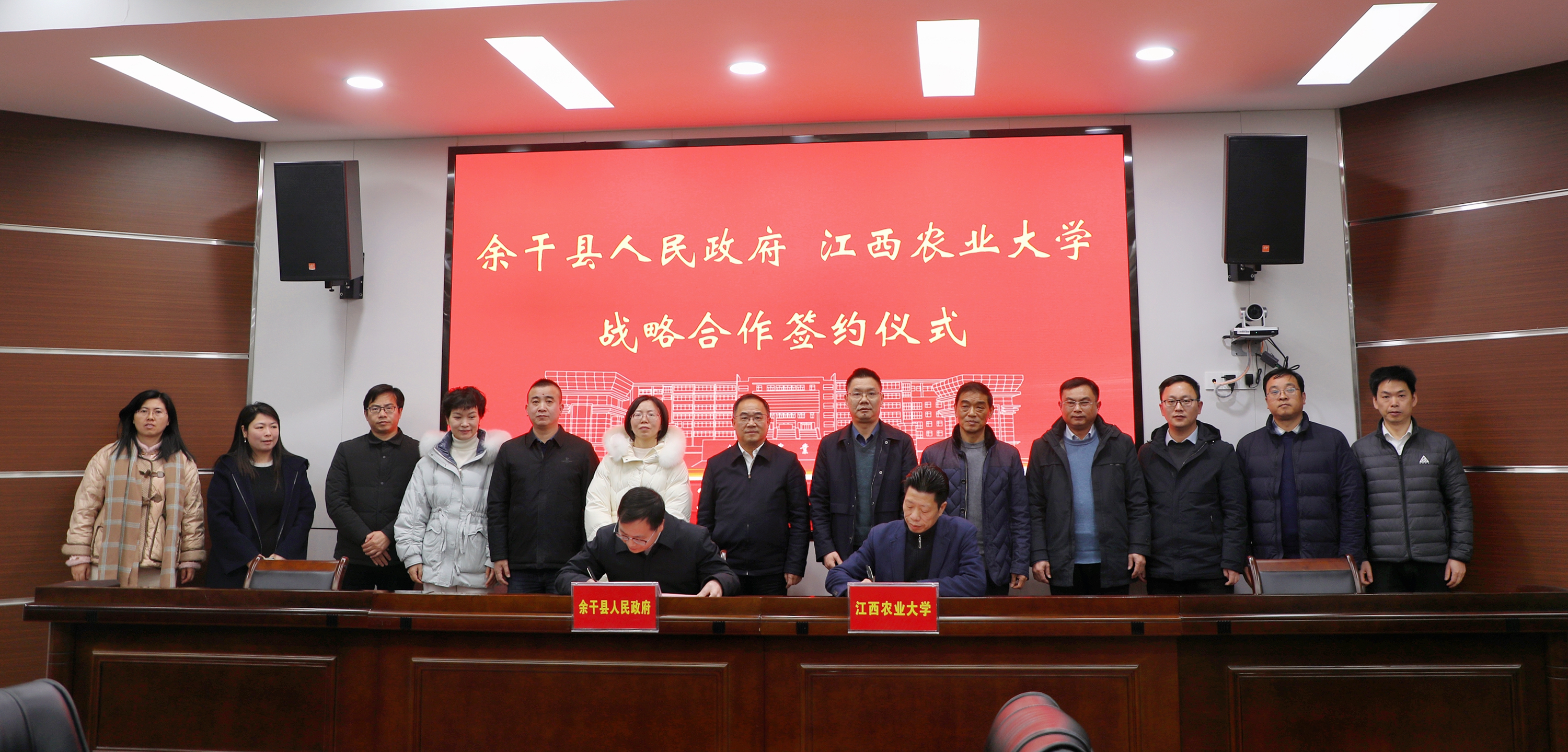 3月1日,ac米兰与上饶市余干县人民政府战略合作签约仪式在校办二楼圆厅举行。校党委副书记蔡海生、副校长王文君,组织部、科技处、农学院、动科院、软件院、食品院、继教院相关单位负责人及专家代表,余干县委书记胡斌,县委常委祝清华及县生态食品产业园、县科协、县农业农村局等单位负责人参加活动。
